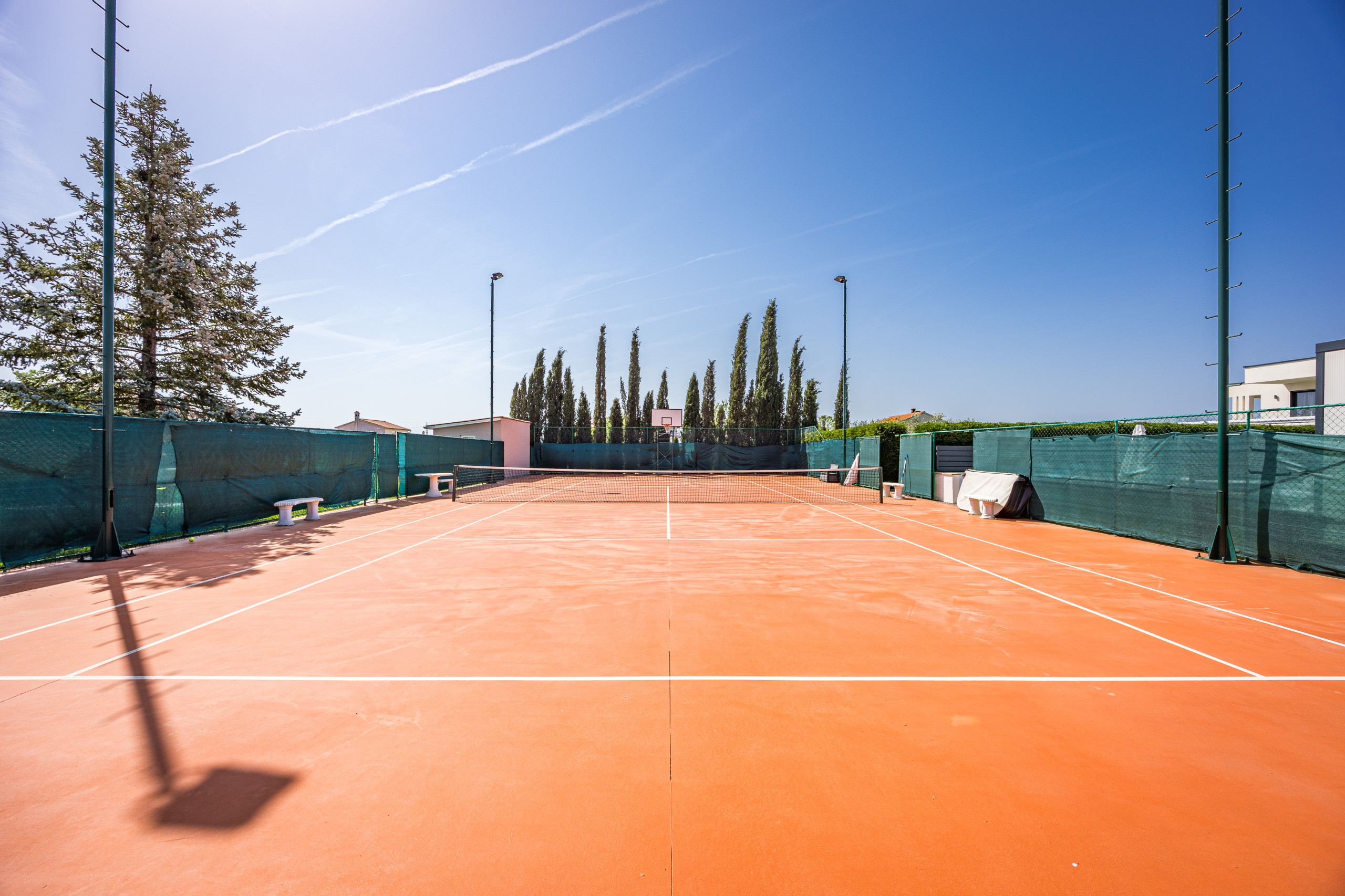 This beautiful, modern and stylishly furnished villa has a private pool and a shared tennis court with lighting so that you can play tennis even at night. But basketball fans also come here to their wishes and take an active vacation here.