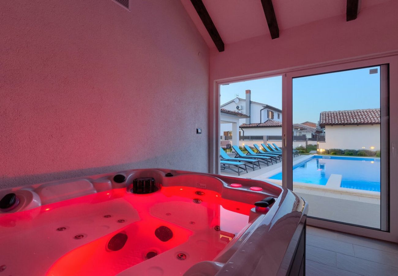Located near the historic city of Pula, in the charming and tranquil village of Šišan, Villa Ginetto is the ideal getaway for families or groups of up to 8 guests. This elegant villa offers 4 spacious bedrooms, each equipped with a cozy double bed, ensuring restful nights for everyone. Additionally, the property features 5 modern and well-appointed bathrooms, providing ample convenience and privacy. 4 bathrooms are located within each rooms, while fifth one is located near outdoor pool in the wellness area. The villa features a luxurious wellness area complete with a finnish sauna, whirlpool, and relaxation room. Casa Ginetto offers a charming traditional konoba featuring a billiards table, darts, table football, and a cozy fireplace with a large dining table, complemented by a barbecue area – perfect for relaxed evenings and social gatherings.