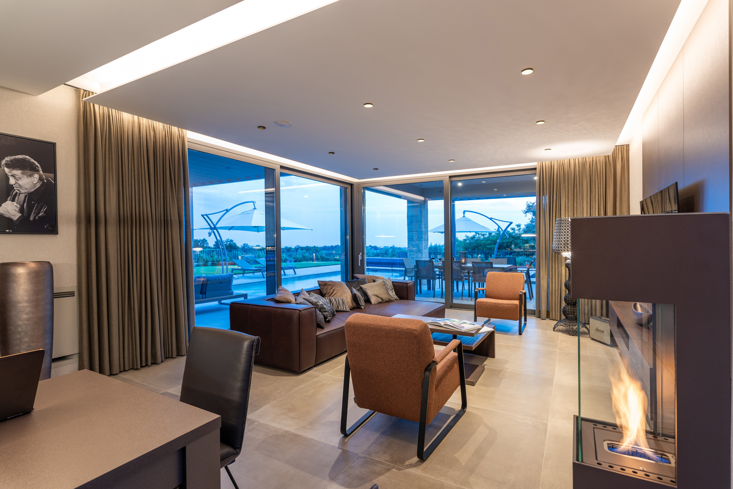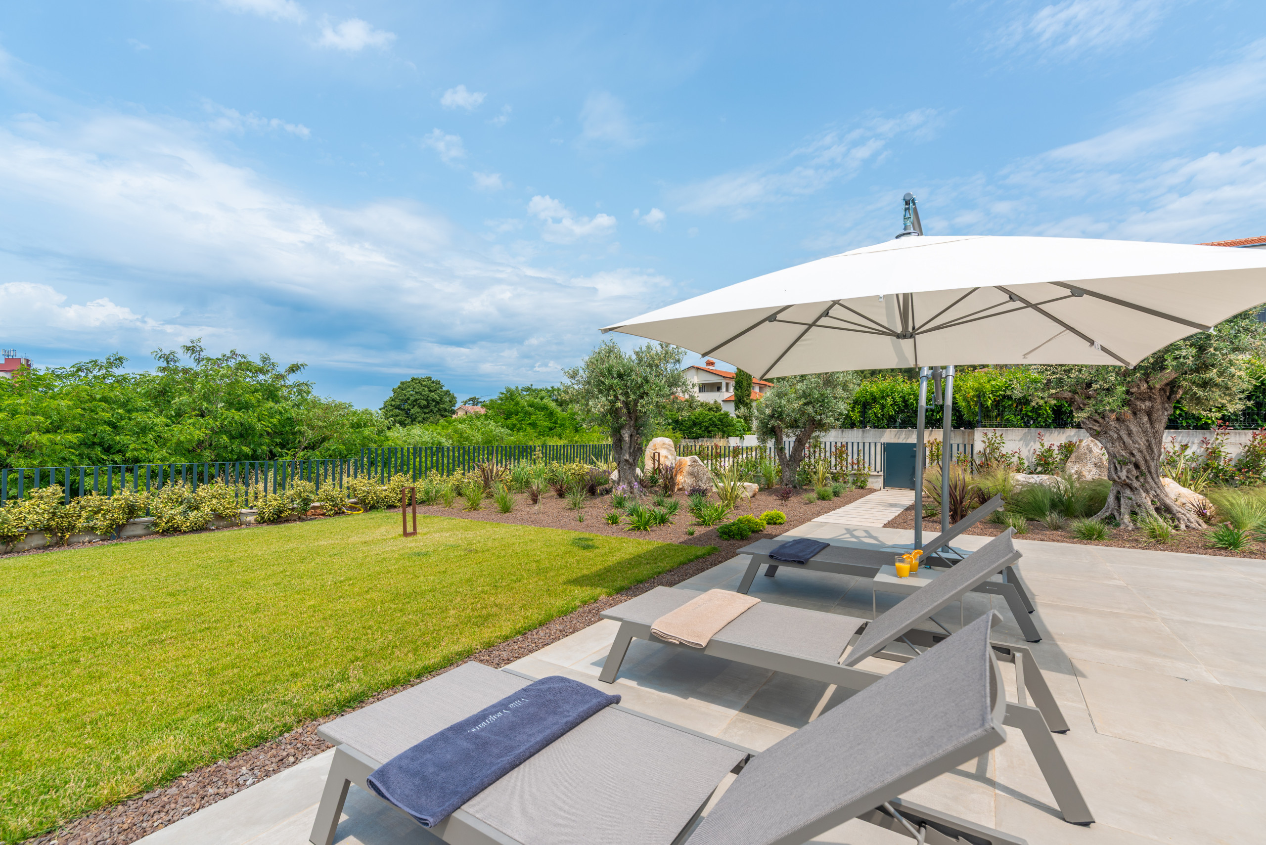 The villa also offers a wellness area with a sauna, additional WC and shower. The 49 m² heated saltwater pool invites you to swim from spring to autumn and is surrounded by a sunny terrace equipped with 8 sun loungers and 2 umbrellas. For outdoor dining, you can enjoy a fully equipped summer kitchen with a gas grill, perfect for cozy evenings under the Istrian sky.