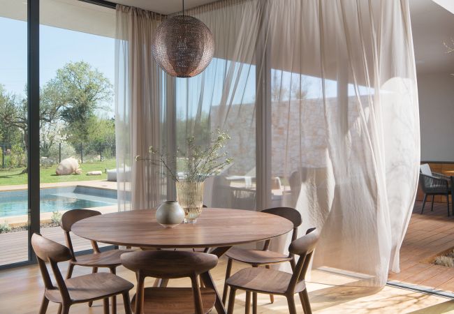 A magnificent 36m2 private heated pool is the focal point of the property so you can relax and enjoy even the hottest summer days. Pool heating is free of charge. Next to the pool area there is a covered terrace with dining area and barbecue. Continue to the interior of the villa which is spread over two floors. On the ground floor there is a beautiful living and dining area with access to the terrace. The villa has two balconies and two terraces.