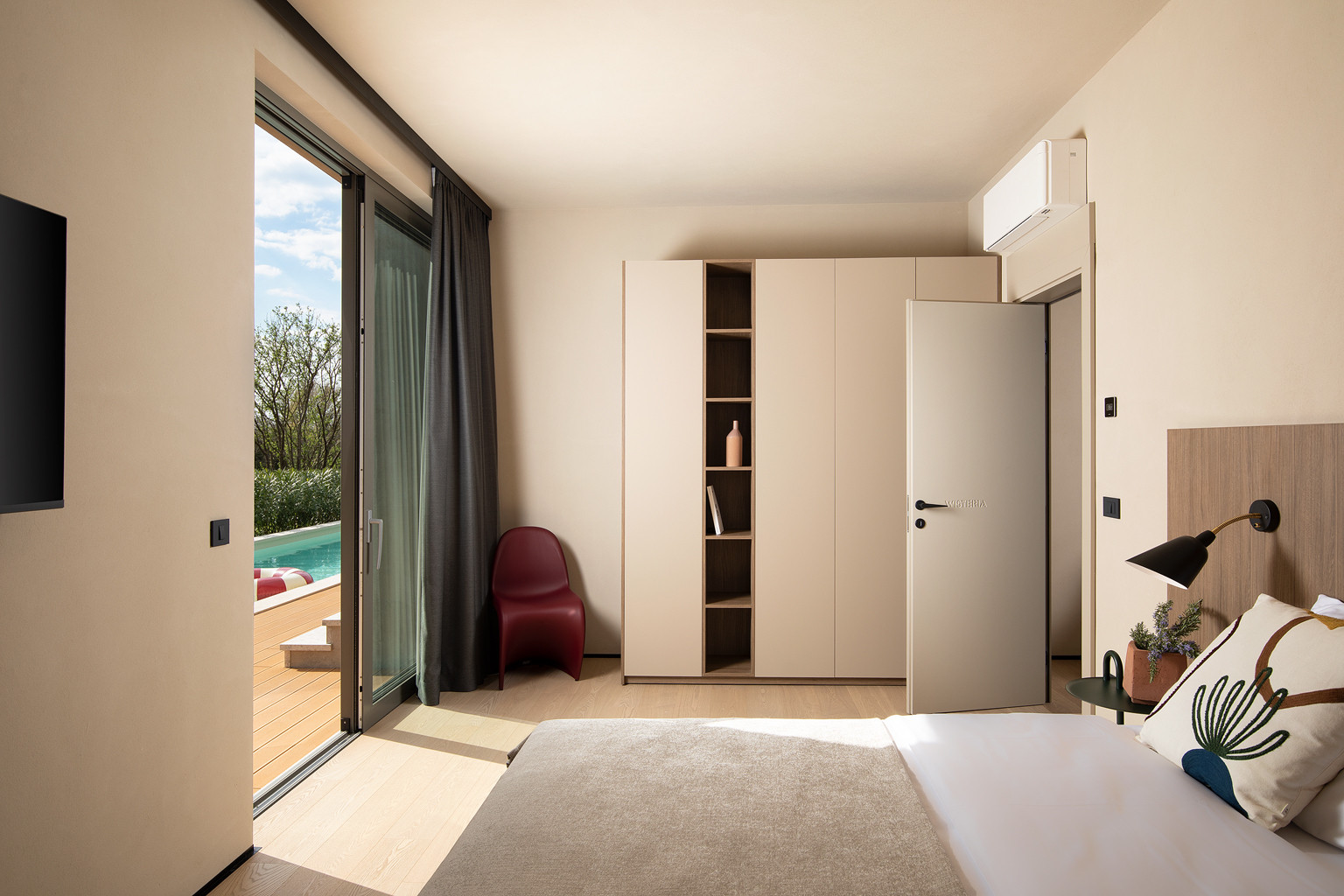 Step outside to discover a spectacular pool that glistens under the sun, offering a refreshing oasis. The pool area is surrounded by comfortable loungers, making it the perfect spot to unwind while taking in the breathtaking panoramic views of the Brijuni Islands.