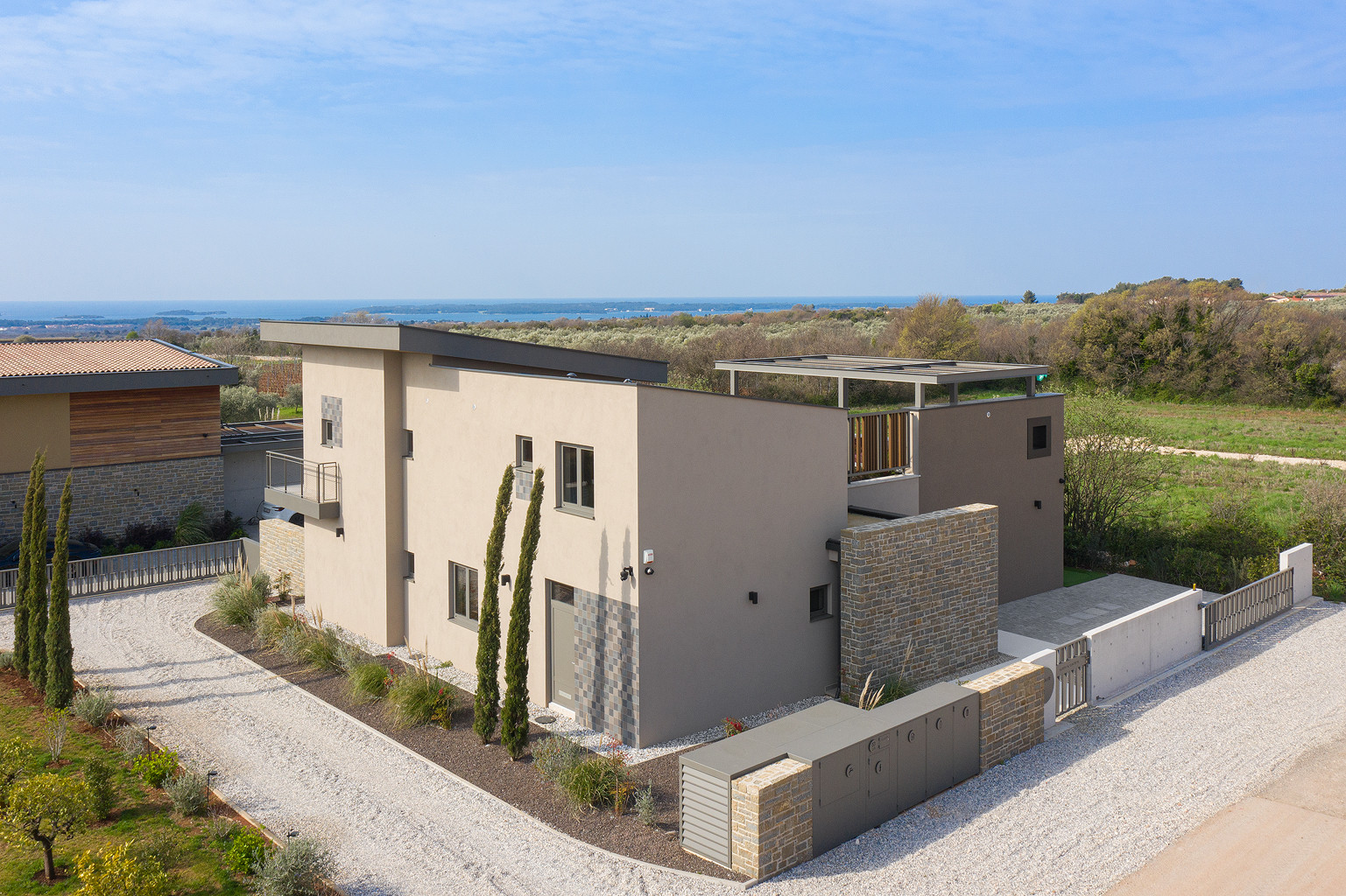 Ideally located just 500 meters from the center of Vodnjan, only 11 kilometers from Pula Airport, and approximately 5 kilometers from the first beaches, Fažana, and the Brijuni National Park islands, Puerto de Luz offers both convenience and seclusion. It is a place where contemporary design meets Mediterranean ease, enriched by captivating sea views, creating an atmosphere of quiet prestige, relaxation, and effortless elegance.