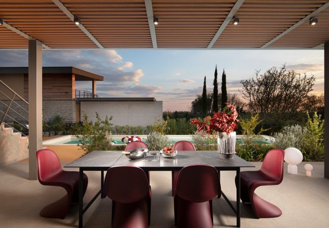 The luxurious designer villa Puerto de Paz located in Vodnjan, a perfect blend of elegance and comfort that promises an unparalleled retreat. This stunning property is surrounded by lush greenery and offers a wealth of amenities, making it an ideal choice for discerning travelers seeking a serene escape.