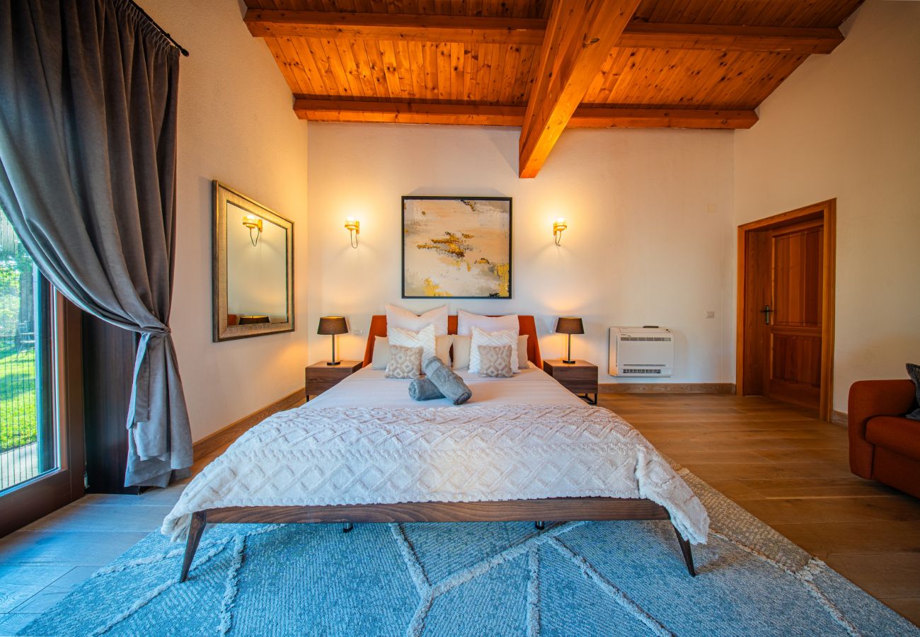Размещение имеет зеленая зона, сад, oгороженный участок, стиральная машина, сушилкой для белья, Барбекю, Камин, утюг, сейф, Доступ в интернет (wi-fi), Фен, Балкон, Сигнализация, Сауна, Джакузи, систему кондиционирования во всем помещении, закрытый бассейн собственный бассейн, Открытая парковка в этом же здании, москитные сетки во всём помещении, 5 телевизоры, спутниковая антенна (языки: англиийский, немецкий, французский).