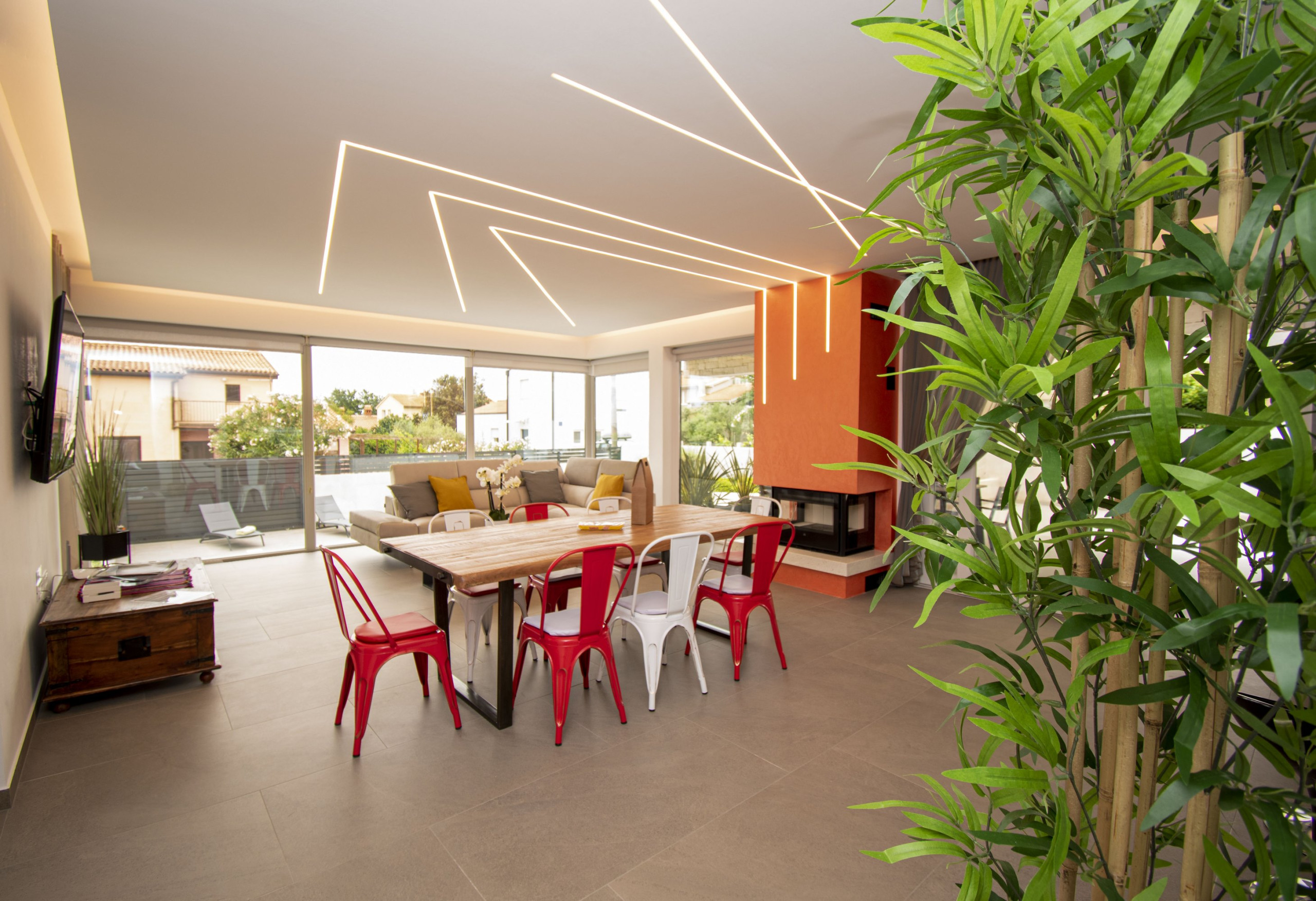Размещение имеет зеленая зона, сад, oгороженный участок, 75 кв.м террасы, стиральная машина, Барбекю, Камин, утюг, сейф, Доступ в интернет (wi-fi), Фен, Балкон, Детская прощадка, Сигнализация, система отопления, систему кондиционирования во всем помещении, бассейн собственный бассейн, Открытая парковка в этом же здании, 4 электрические антимоскитные устройства, 5 телевизоры, спутниковая антенна (языки: англиийский, немецкий, французский).