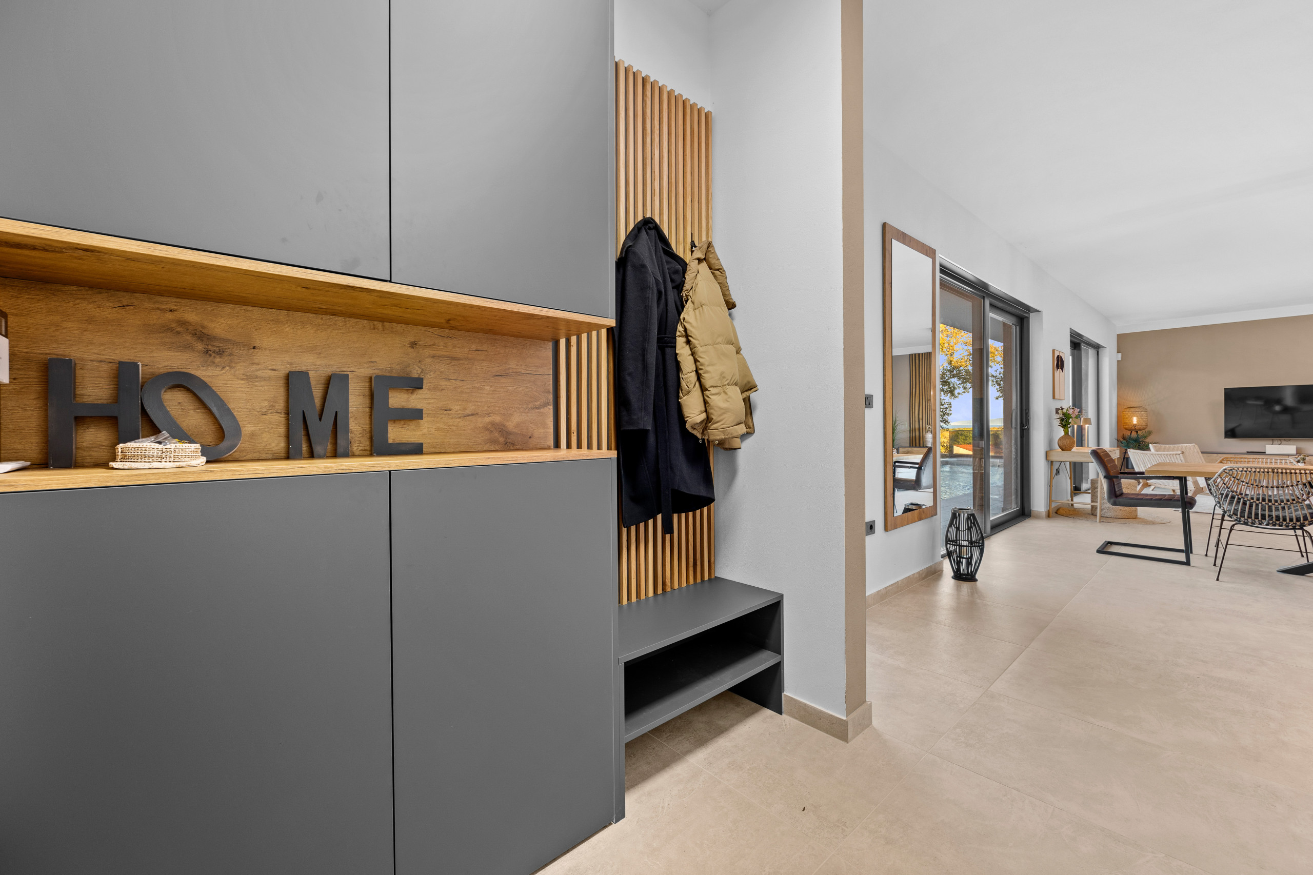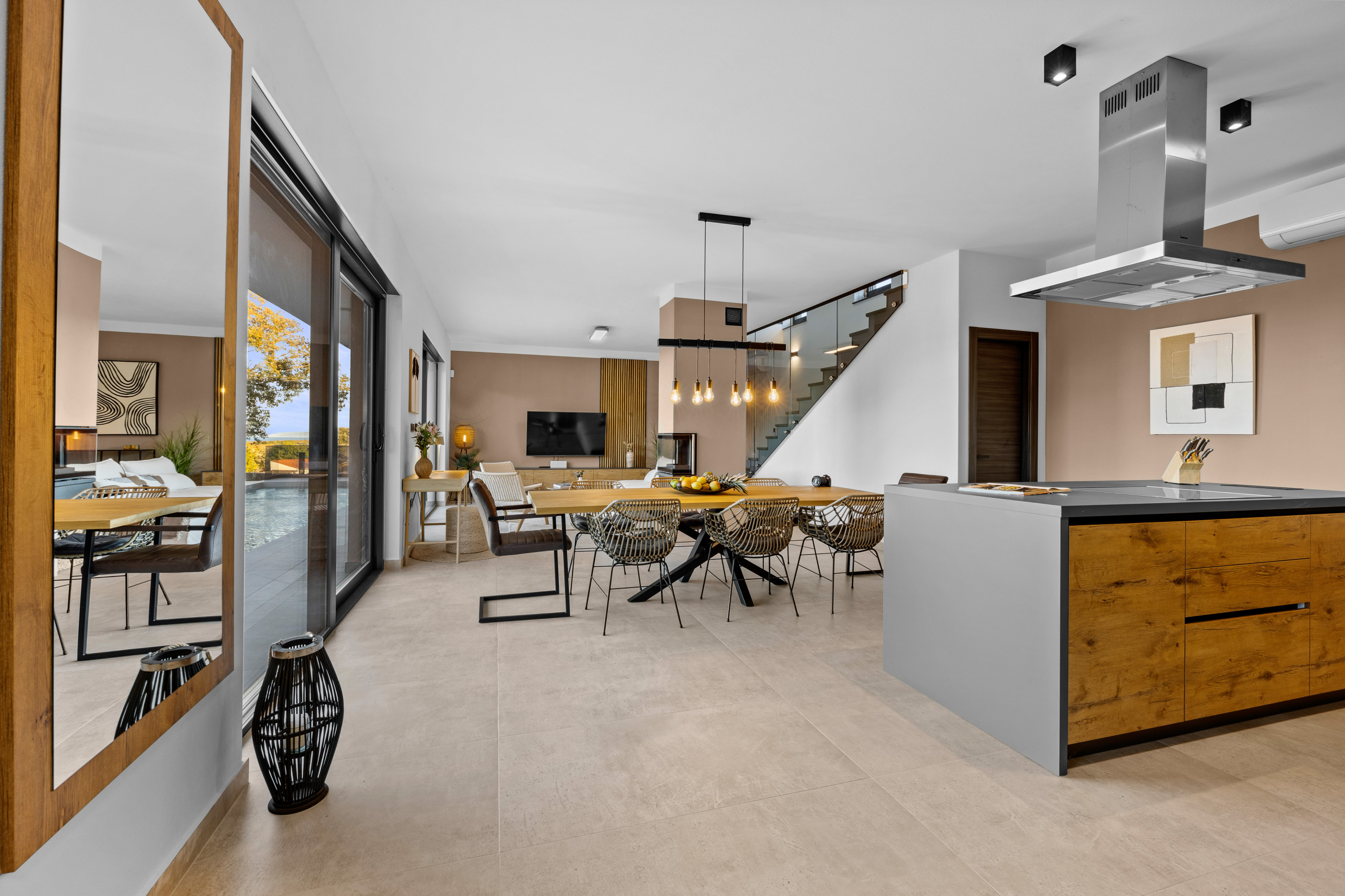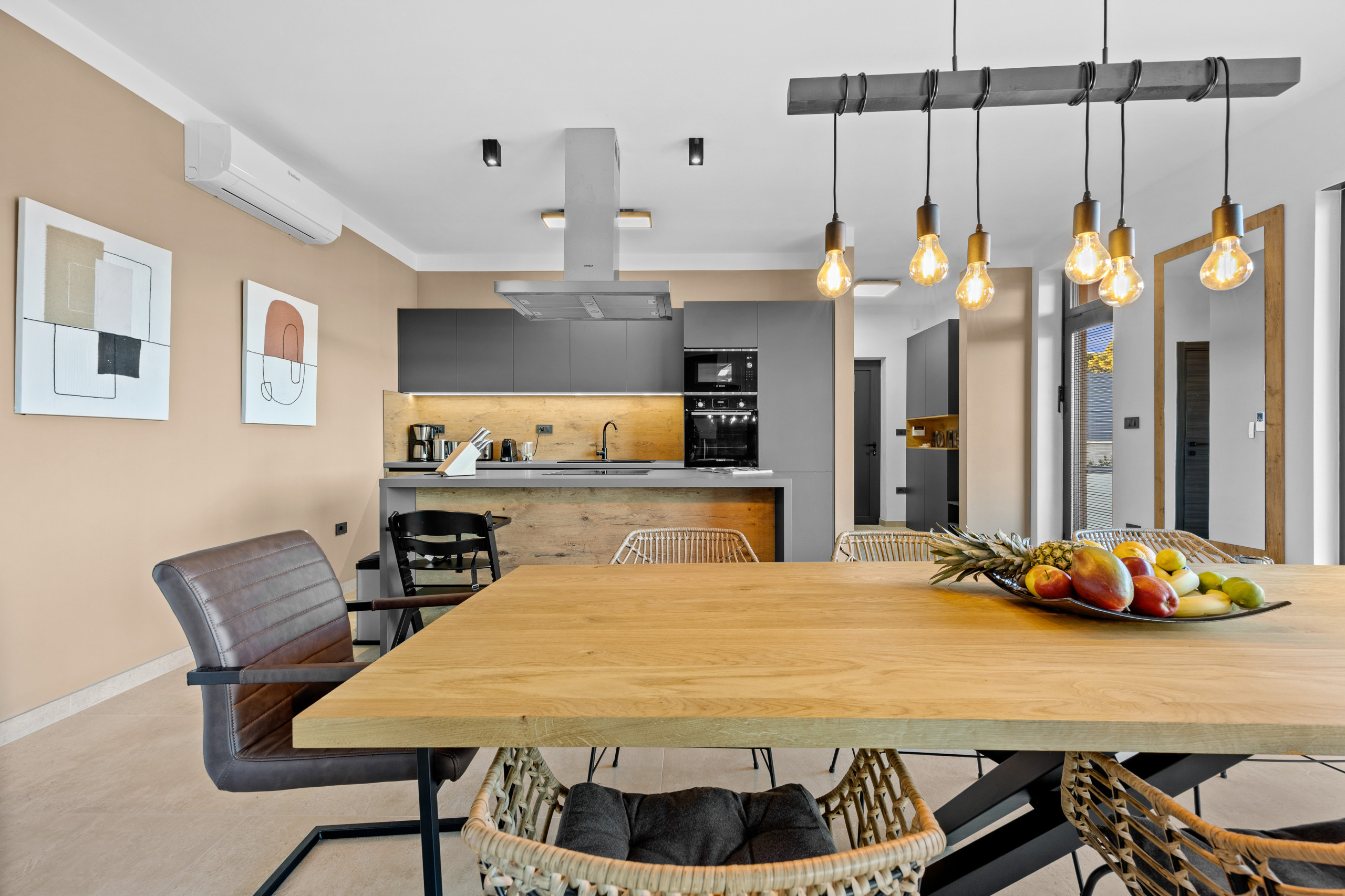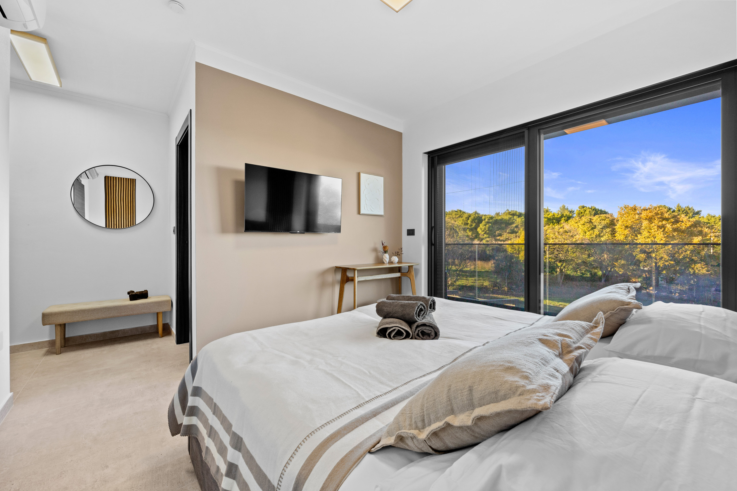 вилла в Ližnjan 5 количество спален вместимостью на 10 чел. Проживание из 220 кв.м красивый и современный, с видом на море и сад. Находится в 300 м от супермаркета, в 500 м До ресторана, в 600 м от города, в 2 km от галечного пляжа, в 13 km от аэропорта и расположено в спокойной зоне и рядом с морем.Размещение имеет зеленая зона, сад, oгороженный участок, стиральная машина, Барбекю, Камин, утюг, сейф, Доступ в интернет (wi-fi), Фен, Балкон, Сигнализация, кондиционер, закрытый бассейн собственный бассейн, закрытая парковка в этом же здании, москитные сетки в спальной комнате, 5 телевизоры, спутниковая антенна (языки: немецкий). Кухня, оснащена индукционной плитой, оборудовано холодильник, микроволновая печь, духовка, морозильная камера, посудомоечная машина, столовые приборы, кухонная утварь, кофеварка, тостер и Чайник.