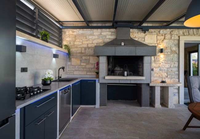 Villa Gambin near Poreč for 8 persons with private 36 m2 pool, whirlpool, kids playground & sea view