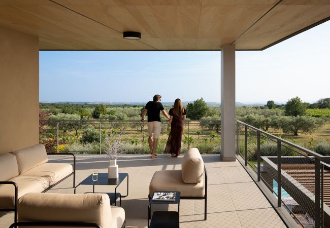 Luxury Villa Puerto de Paz for 8 people near Fažana with 60 m2 private heated pool, sauna, mini-golf & sea view