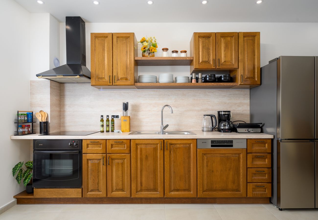 Кухня, оснащена смешанная : электро- и газ, оборудовано холодильник, микроволновая печь, духовка, морозильная камера, посудомоечная машина, столовые приборы, кухонная утварь, кофеварка, тостер и Чайник.
